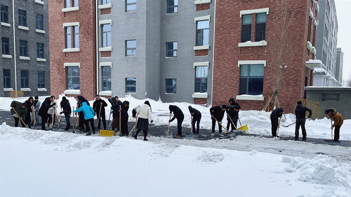 在積雪清掃行動中,集團全體黨員、團員和廣大員工積極響應(yīng),踴躍參加,以航空產(chǎn)業(yè)園區(qū)為中心,對器械難以清除和到達的區(qū)域、冰層進行補充作業(yè)。大家不懼嚴寒,自覺沖鋒在第一線,在寒風(fēng)大雪中堅持完成除雪任務(wù),全力保障產(chǎn)業(yè)園區(qū)道路暢通,充分了發(fā)揮集團黨組織戰(zhàn)斗堡壘作用和全體黨員先鋒模范作用,讓黨旗在應(yīng)對冰雪天氣工作第一線高高飄揚。